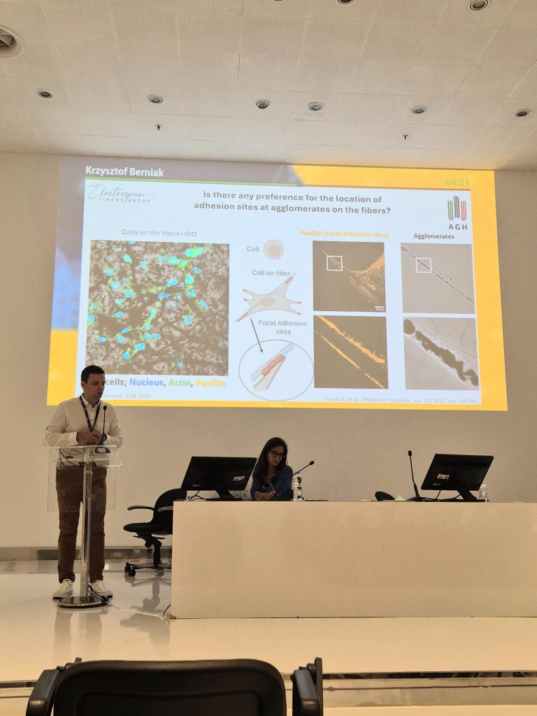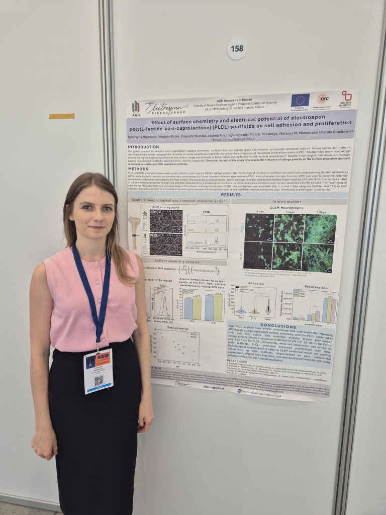 Christmas group outing at Minoas Greek Tavern Restaurant . (19th December 2024)Dr Joanna Karbowniczek presented her research about „Studies on composite scaffolds produced by electrospinning for bone tissue regeneration”” during a Department of Metallurgy and Powder Metallurgy seminary. (3rd December 2024)Prof. Urszula Stachewicz and dr Krzysztof Berniak during aMAD-Nano24: Madeira International Conference on Emerging Trends and Future of Nanomaterials for Human Health in Funchal, Madeira Island, organized by the Madeira Chemistry Research Centre (CQM) of the University of Madeira (28th – 30th, November 2024). Dr Daniel P. Ura during the International Symposium on Fiber Science and Technology 2024 in Kyoto, Japan (25th – 28th November 2024).Joanna A. Karbowczniek received a „The Best Teacher” award in the AGH University of Krakow (20th November 2024)Electrospun Fibers Group hosting the 8th-grade students of the European College – European Private Primary School at Kraków in our Bio-laboratory (4th November 2024)Electrospun Fibers Group during a trip in Czorsztyn and Niedzica Castle, and Dunajec River – Tatry, Poland (4th – 6th September 2024)Prof. Urszula Stachewicz, Joanna Knapczyk-Korczak, Piotr K. Szewczyk, and Daniel P. Ura during a meeting with the President of the European Research Council (ERC), Professor Maria Leptin in Warsaw, Poland (23th September 2024).Piotr K. Szewczyk and Michał Kopacz during the 11th Torunian Carbon Symposium in Toruń, Poland (15th – 18th September 2024).Prof. Urszula Stachewicz (as a plenary speaker) during a 2024 International Symposium on Advanced Bionics (ISAB 2024) organized by The International Society of Bionic Engineering from Jilin University, Changchun, China (10th-13th September 2024)Prof. Urszula Stachewicz, Joanna Karbowniczek and Piotr K. Szewczyk visiting a Yonglun Luo group and DREAM lab and iNano at Aarhus University, Aarhus, Denmark. (30th August 2024)Joanna Karbowniczek and Krzysztof Berniak during a European Microscopy Congress 2024 in Copenhagen, Denmark . (25th – 30th August 2024)Group outing at AGH Brewery. (18th July 2024)Master thesis defense of Kasia Marszalik at AGH University of Krakow. (12th July 2024)Monica Nabil Gayed Ibrahim from the Estonian University of Life Sciences (EMU) has joined our group for a COST Association – European Cooperation in Science and Technology Short Term Scientific Mission (CA22161 Flavoursome), under the supervision of Prof. Urszula Stachewicz. (1st – 31th July 2024)Prof. Urszula Stachewicz during a 5th International Conference on Biomedical Polymers & Polymeric Biomaterials (ICBPPB 2024) in Shanghai, Donghua University, China, (7-9th July, 2024)Prof. Urszula Stachewicz visiting Prof. Haijun He group at Engineering Research Center for Knitting Technology, Ministry of Education, College of Textile Science and Engineering, Jiangnan University, China. (6th July 2024)Thank you to everyone who participated in and contributed to the success of Electrospin2024 organized by Electrospun Fibers Group at AGH University of Krakow! (25-28th June, 2024)Electrospun Fibers Group presentations at 8th International Conference on Electrospinning Electrospin2024 (25 – 28th June, 2024)Electrospun Fibers Group at poster session at 8th International Conference on Electrospinning Electrospin2024 (26th June, 2024)Daniel P. Ura, PhD and Piotr K. Szewczyk participated in the meeting of the FNP Foundation for Polish Science Scholars Club at Cracow University of Technology, Kraków, Poland. (17th May, 2024).Martyna Polak and Michał Kopacz during a PhoBiA Annual Nanophotonic International Conference – PANIC 2024 at Wroclaw University of Science and Technology, Wroclaw, Poland. (15-17th May, 2024).Prof. Urszula Stachewicz during a Faculty Conference Celebrating Metallurgist Day at AGH University of Krakow, Kraków, Poland. (8-10th May, 2024).Prof. Urszula Stachewicz during a 7th European Symposium on Electrohydrodynamic Atomization and Electrospinning (ESEE2024) in Leeuwarden, the Netherlands, (24-26th April, 2024)Prof. Urszula Stachewicz during an ACS Spring Meeting 2024 in New Orleans, USA (17-21th March 20240MATUR project meeting in collaboration with University of Ostrava at AGH – University of Krakow, Poland. (4th March, 2024)Online PhD viva of Gregory Parisi at Rensselaer Polytechnic Institute (RPI) Troy, NY USA. Congratulations! (27th February 2024)
